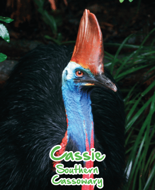 Cassie really is a southerner! She was born in Adelaide in 1992. She arrived to us at Wildlife Habitat in April 1993. It is believed that there is only about 4000 Southern Cassowaries left in the wild. Cassie has a lot of sass, and has a funky little walk that she was born with.